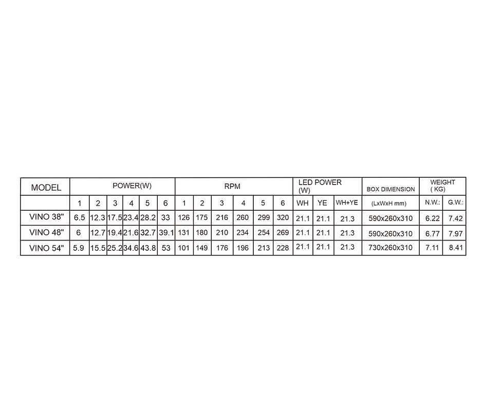 Number of Blade: 5Fan Dimension: 38? / 48? / 54?