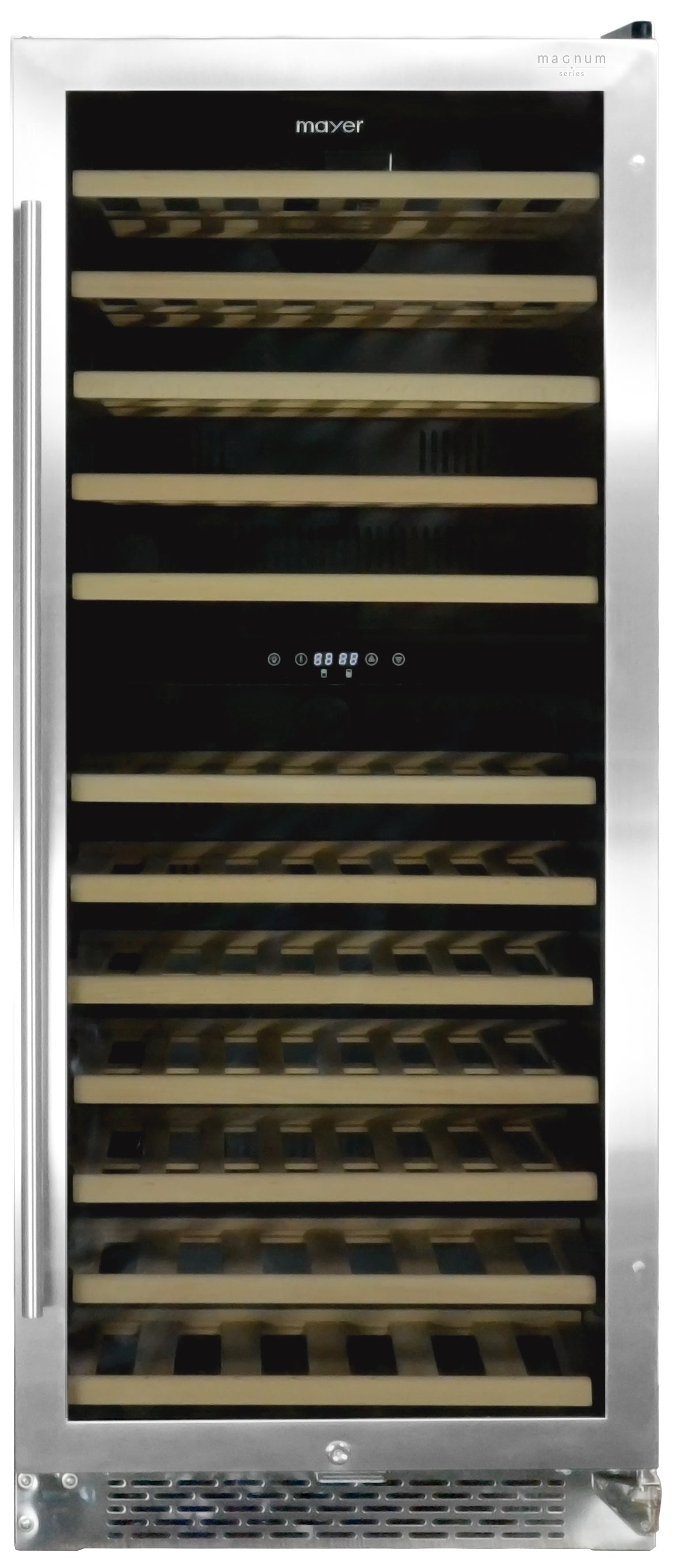 Comes with a contemporary style, Mayer?s MMWC92MAG Wine Chiller allows you to store up to 92 wine bottles. The dual zones help you to store your fine wine at the perfect temperature until it reaches its peak. Made with a 3-layer glass door, this wine chiller further enhanced UV protection. Opt for MMWC92MAG if you have limited space for your wine chiller!