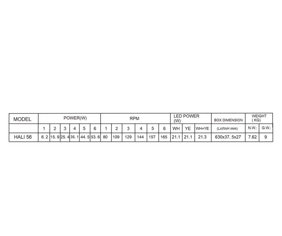 Number of Blade: 6Fan Dimension: 56?/ 48"