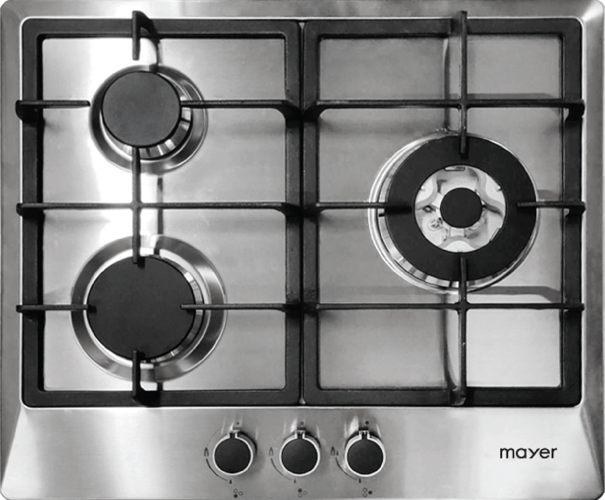 Mayer's high-quality stainless steel hobs are carefully crafted to be durable, low-maintenance, and safe to use. MMSS633, 60CM 3 Burner Stainless Steel Gas Hob is suitable for a household with minimal cooking space. You can now build your dream kitchen with Mayer?s sleek and classic MMSS633!ÿ